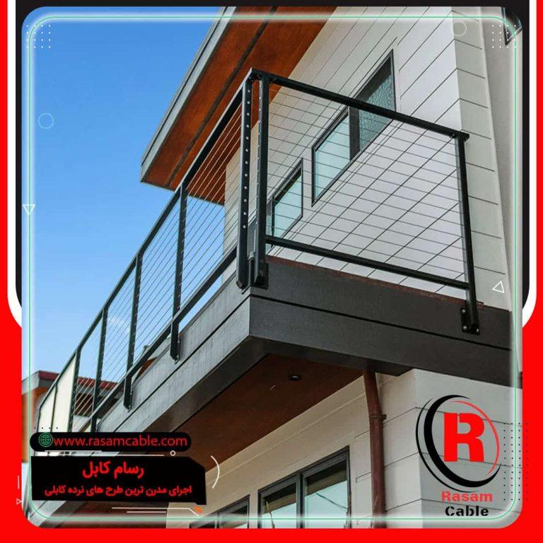 اجرای نرده کابلی بالکن درترکیب با متریال دیگر